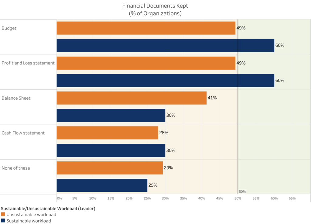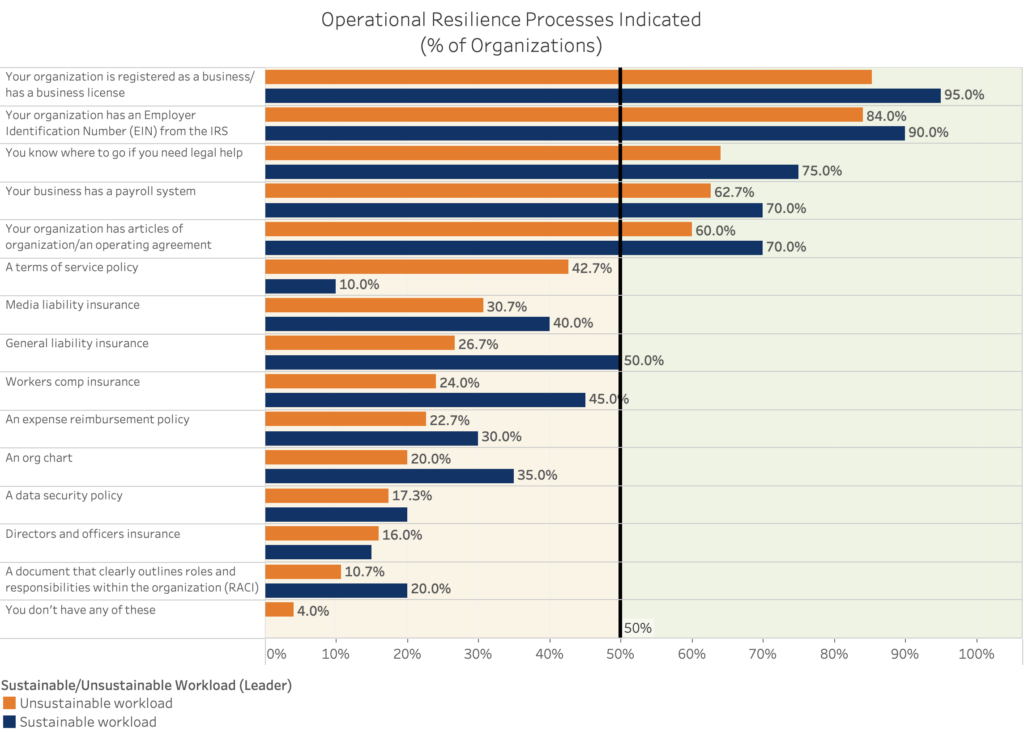 2. The organizations that report having a sustainable workload are more likely to already have operational and bookkeeping processes in place.
