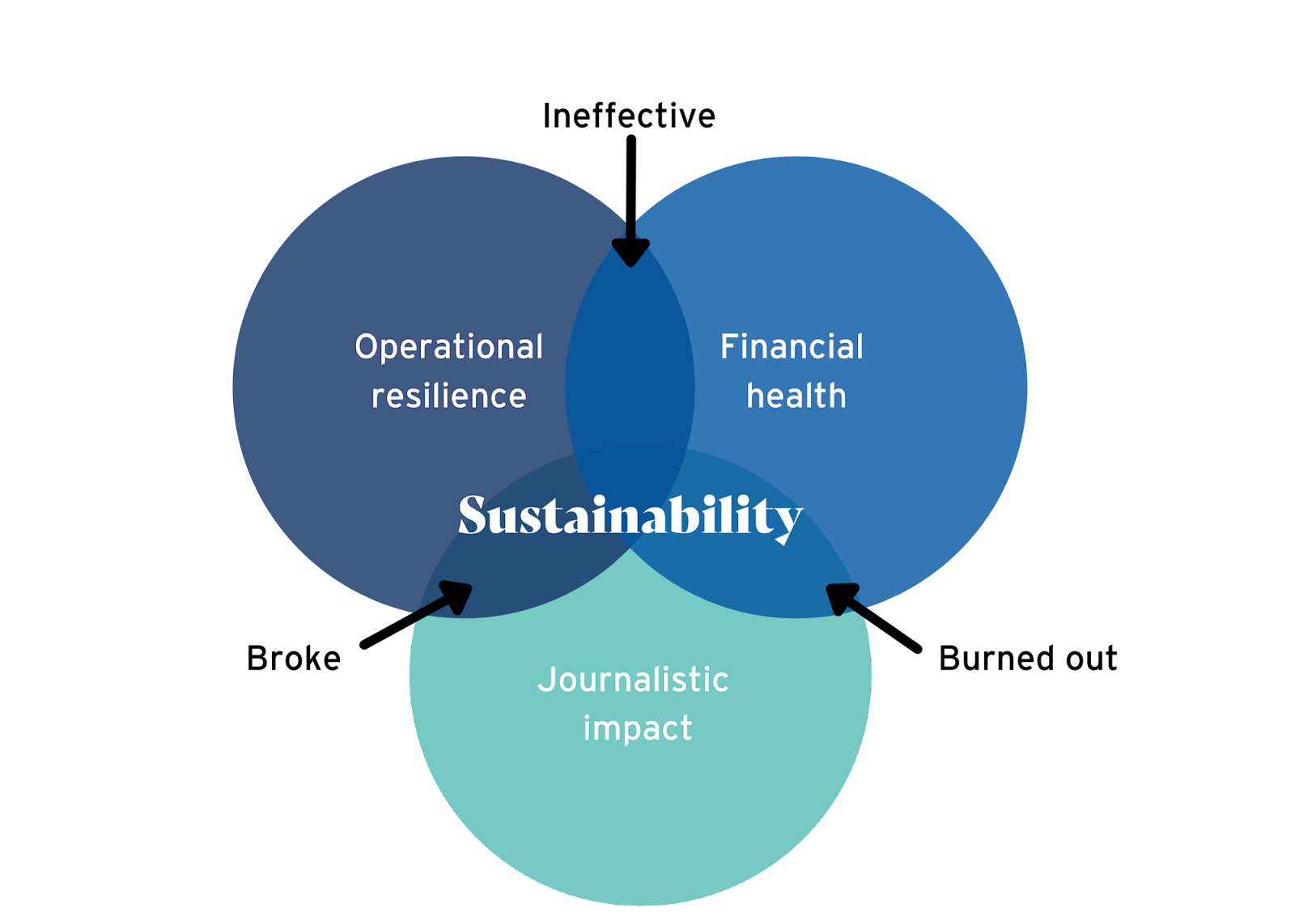 We started by defining sustainability as the union of three pillars: operational resilience, financial health and journalistic impact. The next step was to create a way to measure and track the key performance indicators that characterize those pillars, so we developed our Sustainability Audit to help news businesses identify where they are on the path to sustainability and what steps they might take to keep moving forward.